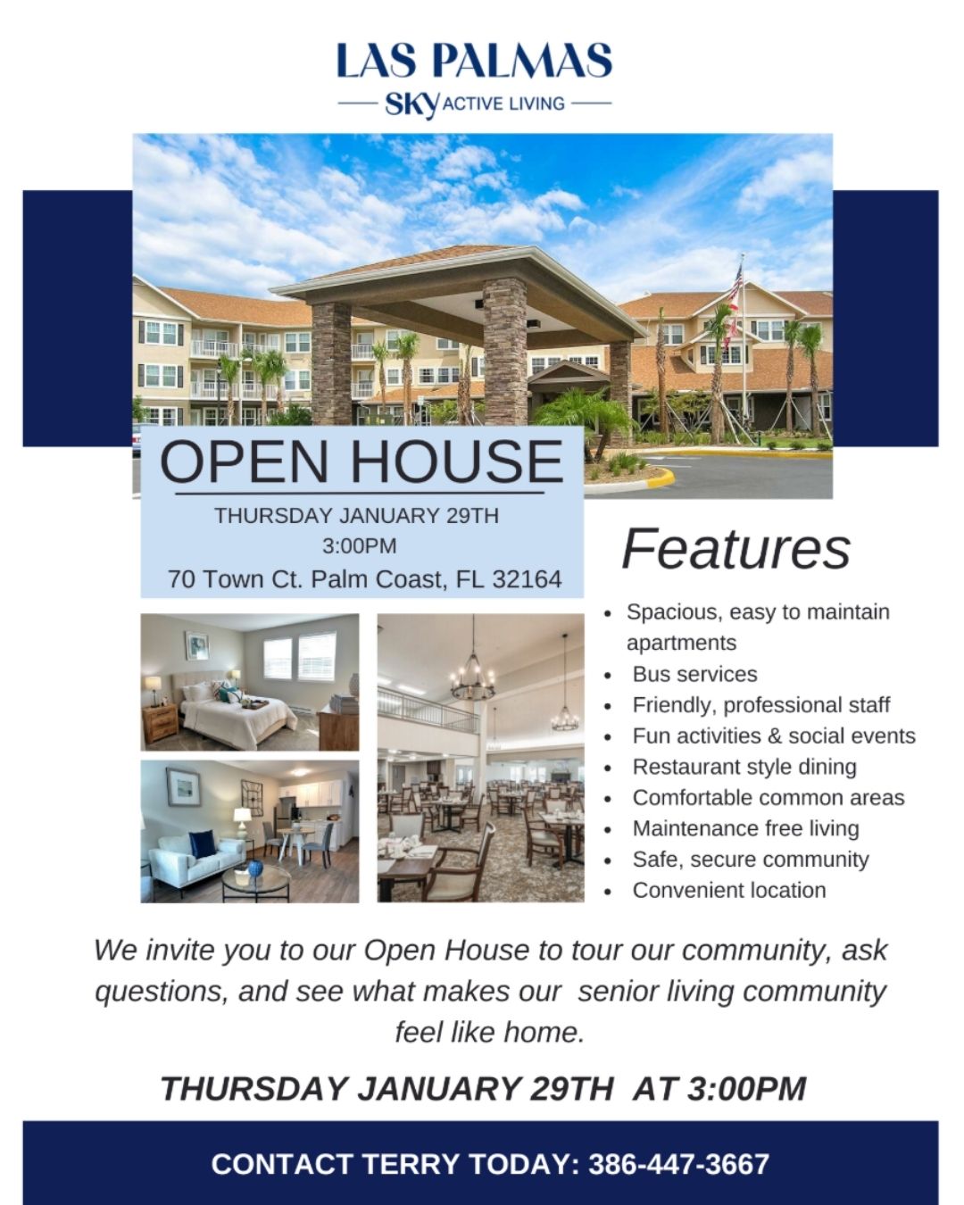 To learn more or to confirm your attendance, contact Terry at 386.447.3667. We look forward to welcoming you and showing you what makes Las Palmas a place residents are proud to call home.